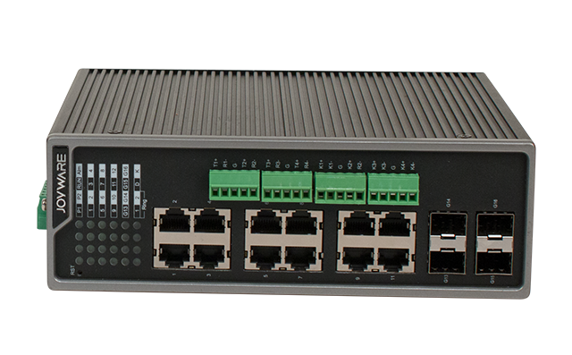 JW-SE20(GF4.E12)-D-L工业以太网产品最多支持4个千兆SFP光口,12个10/100M自适应电口。该系列设备支持接入安全认证,可以实现MAC地址、用户名、端口等方式接入安全认证,有效隔离非法接入设备。具有二层管理工业以太网交换机功能,有效抑制广播风暴、端口控制、流量统计、链路聚合、端口镜像、802.1x、VLAN划分、链路层发现协议(LLDP)、IGMPSnooping等协议。