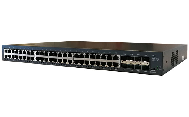 在1U盒式交换机上,最大实现48个千兆+8个万兆的业界最高端口密度,搭载高性能的ASIC交换芯片,可满足各种复杂场景的应用需求